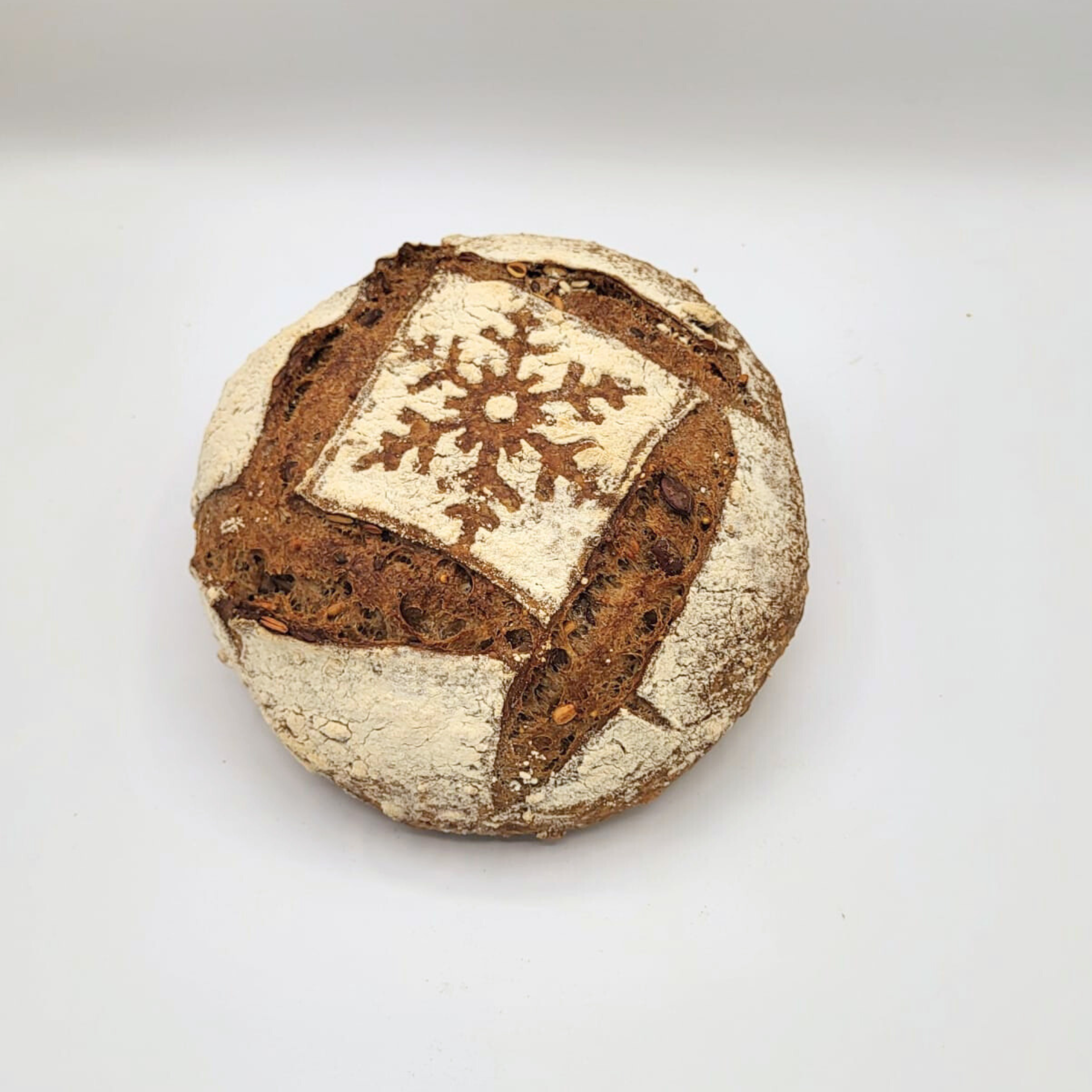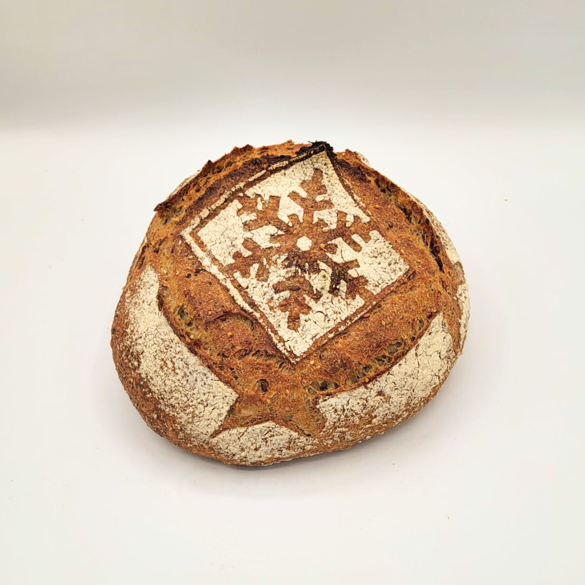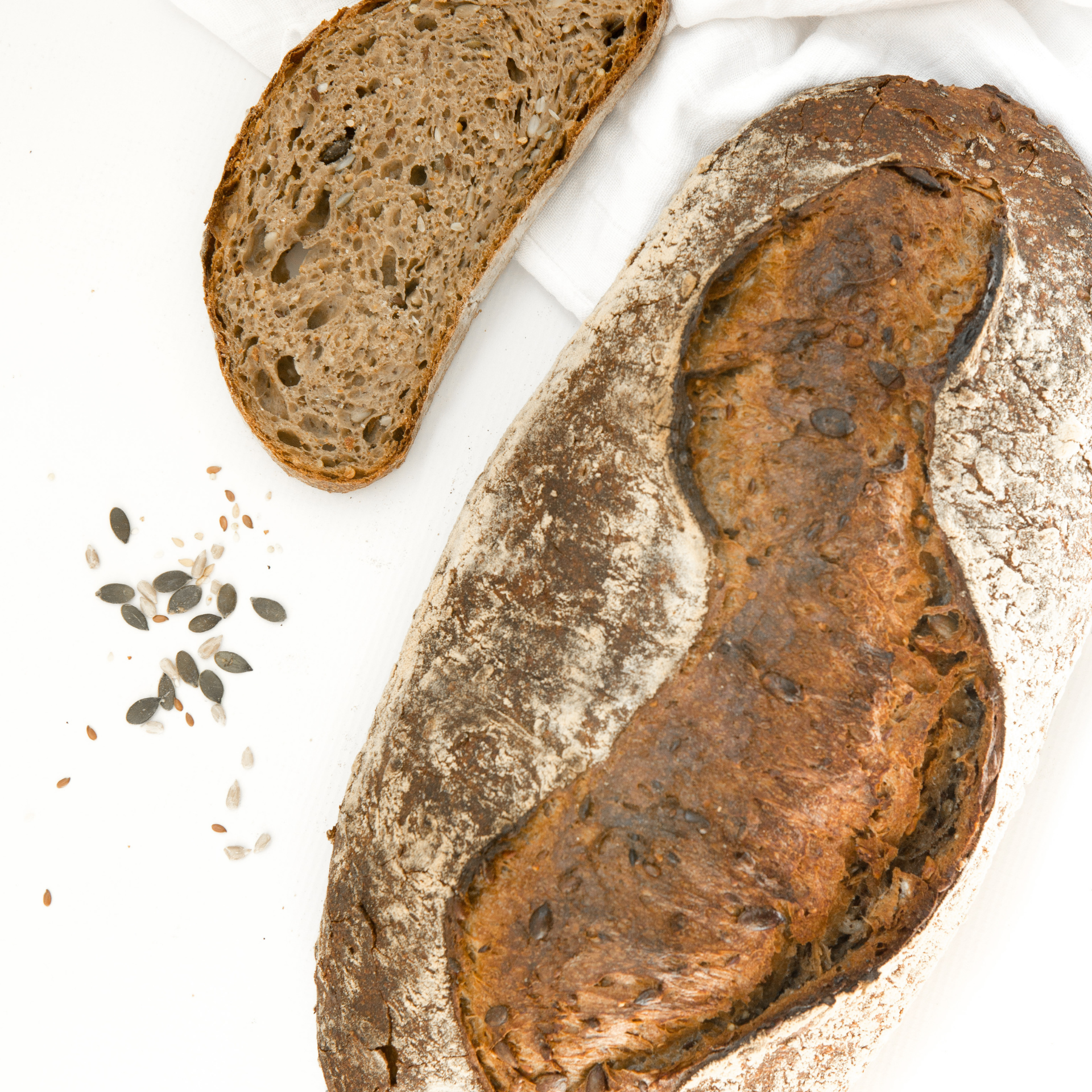 Un mélange de Farine de blé complet et seigle noir avec des graines bio (courges, tournesol, lin brun, lin doré, millet & pavot)